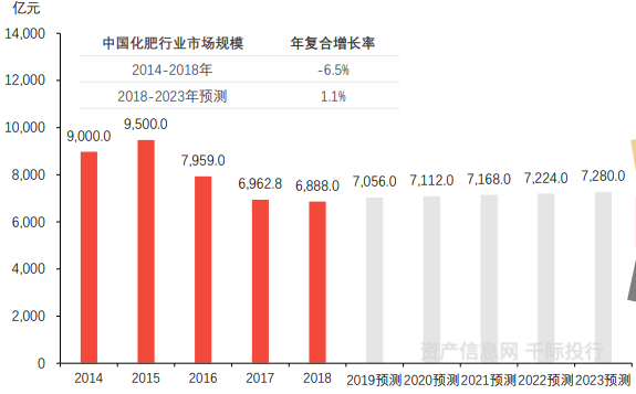 图中国化肥行业市场规模(按销售额计),2014-2023预测