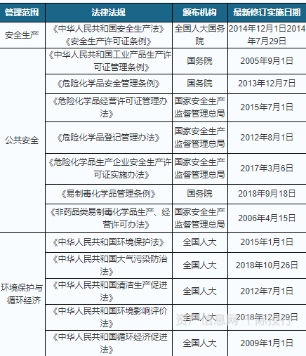 化工行业是国民经济基础产业之一,特别是石油化工与人民生活密切相关,国家对该行业的管理主要是根据行业发展状况,完善产业市场进入和经营流通方面的政策,建立公平的市场竞争秩序,并制定和实施合理的内外贸易政策,通过职能部门按照产业政策实行政府部门宏观调控和行业协会规范自律管理相结合的监管体制,促进企业向集约化、规模化方向发展。国家发展和改革委员会承担对化工行业宏观调控的职能,主要负责研究分析产业发展情况,组织拟定产业政策,提出优化产业结构、所有制结构和企业组织结构的政策建议,监督产业政策落实情况。