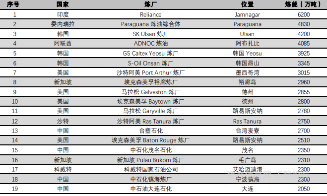 图2019 年全球前20大炼厂