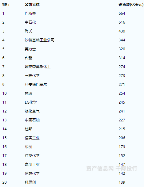 图 2019全球化工企业50强名单
