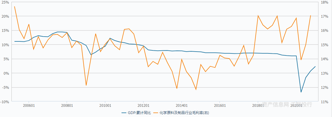 图 GDP同比增长和化学原料及制品行业毛利率