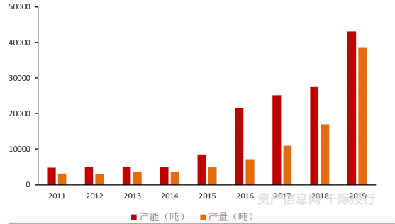 图2011-2019年全球草铵膦行业产能产量统计