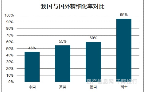 图我国与国外精细化率对比