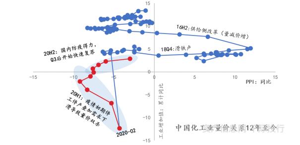 图化工业整体产量增速呈现台阶式下行,期间价格周期性震荡